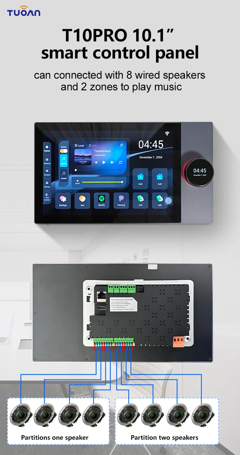 Touch Screen Smart Control Panel Music Center with 8 Wired in Ceiling Speakers Two Music Zones Function