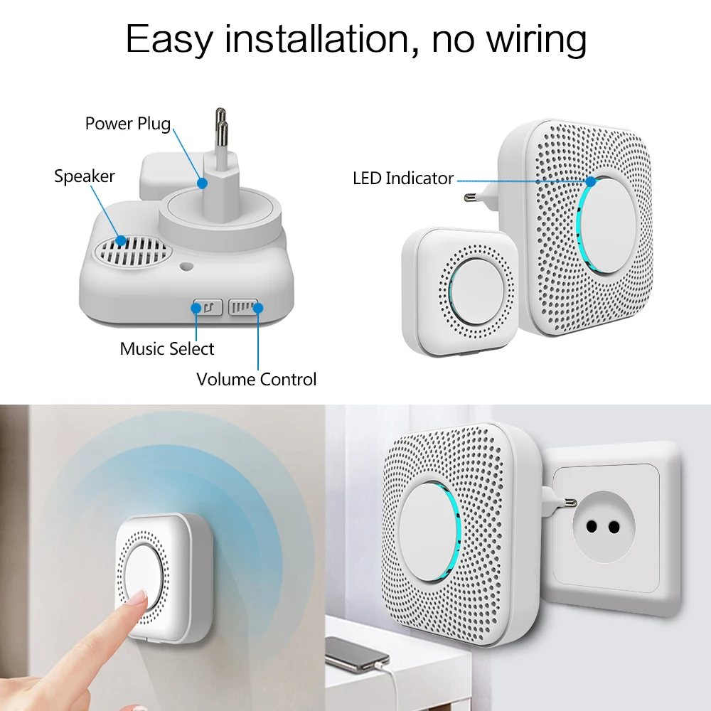 Wireless Doorbell EU US Plug Smart Door Bell Battery 110V-220V